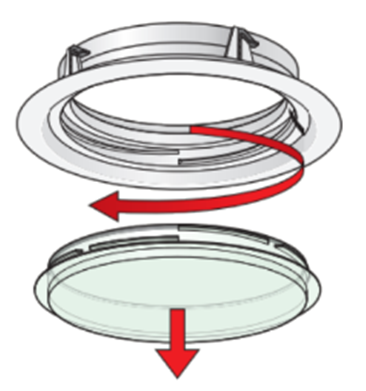 - Se la plafoniera non dispone di una cornice interna, è sufficiente ruotare la lastra del diffusore in senso antiorario per svitarla dal diffusore.