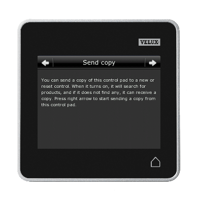 Prepare your two-way control pad KLR 200 to send a copy of the products to your new VELUX Touch.