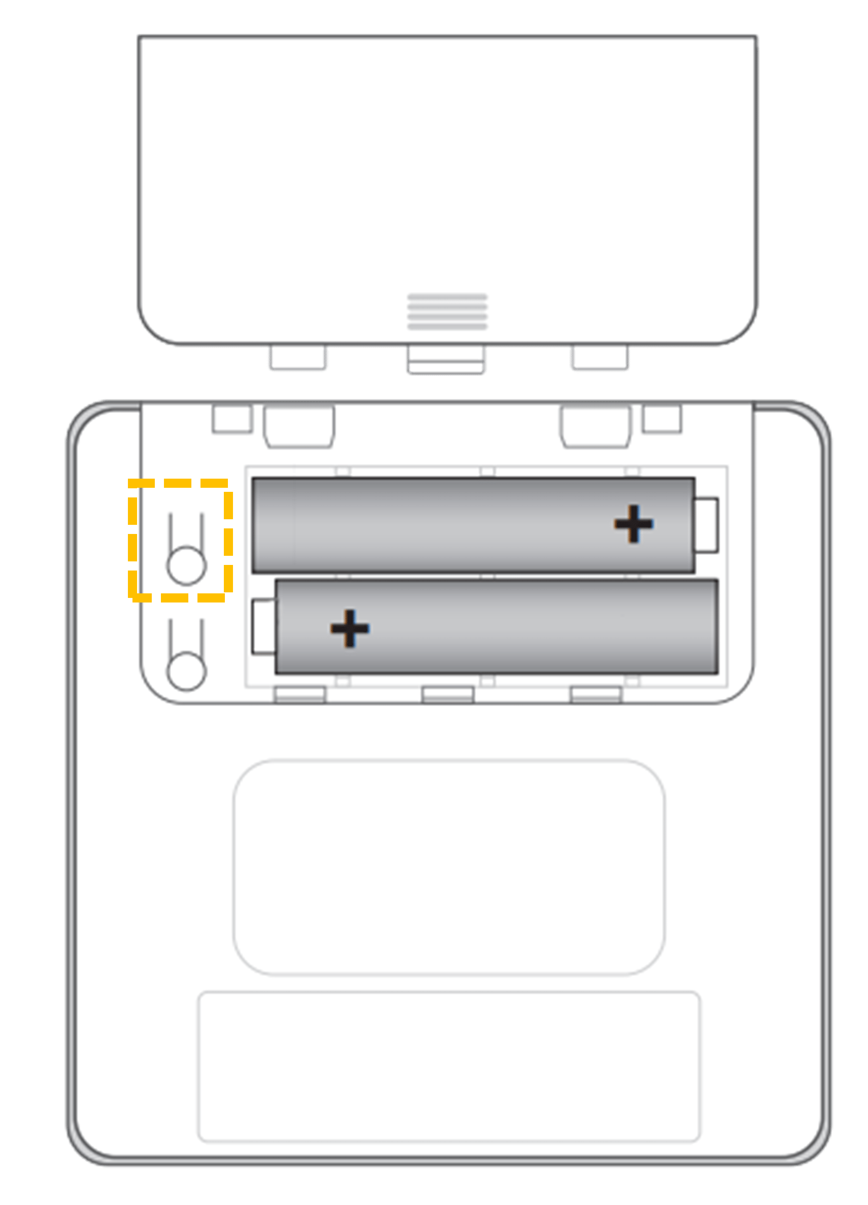 - Turn your VELUX Touch around to access the battery compartment on the back. Remove the battery compartment lid, and locate the product key button (key icon) on the left.