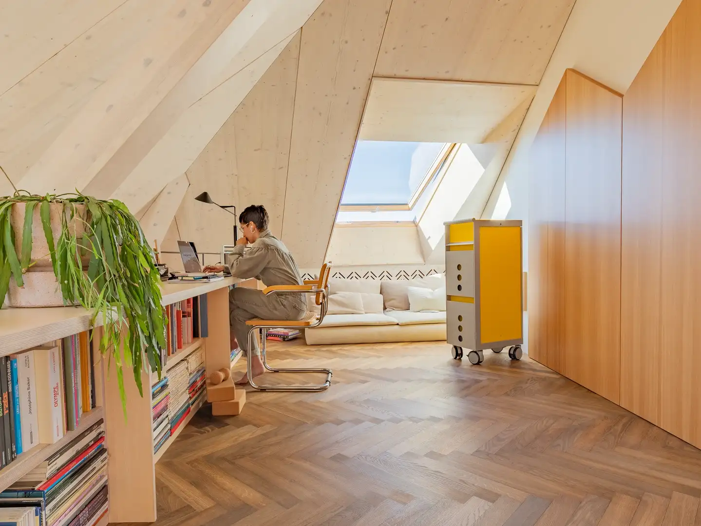 Mobili bassi, su misura, modulari e salvaspazio aiutano a organizzare anche le zone più complesse, mantenendo la mansarda ordinata e funzionale.