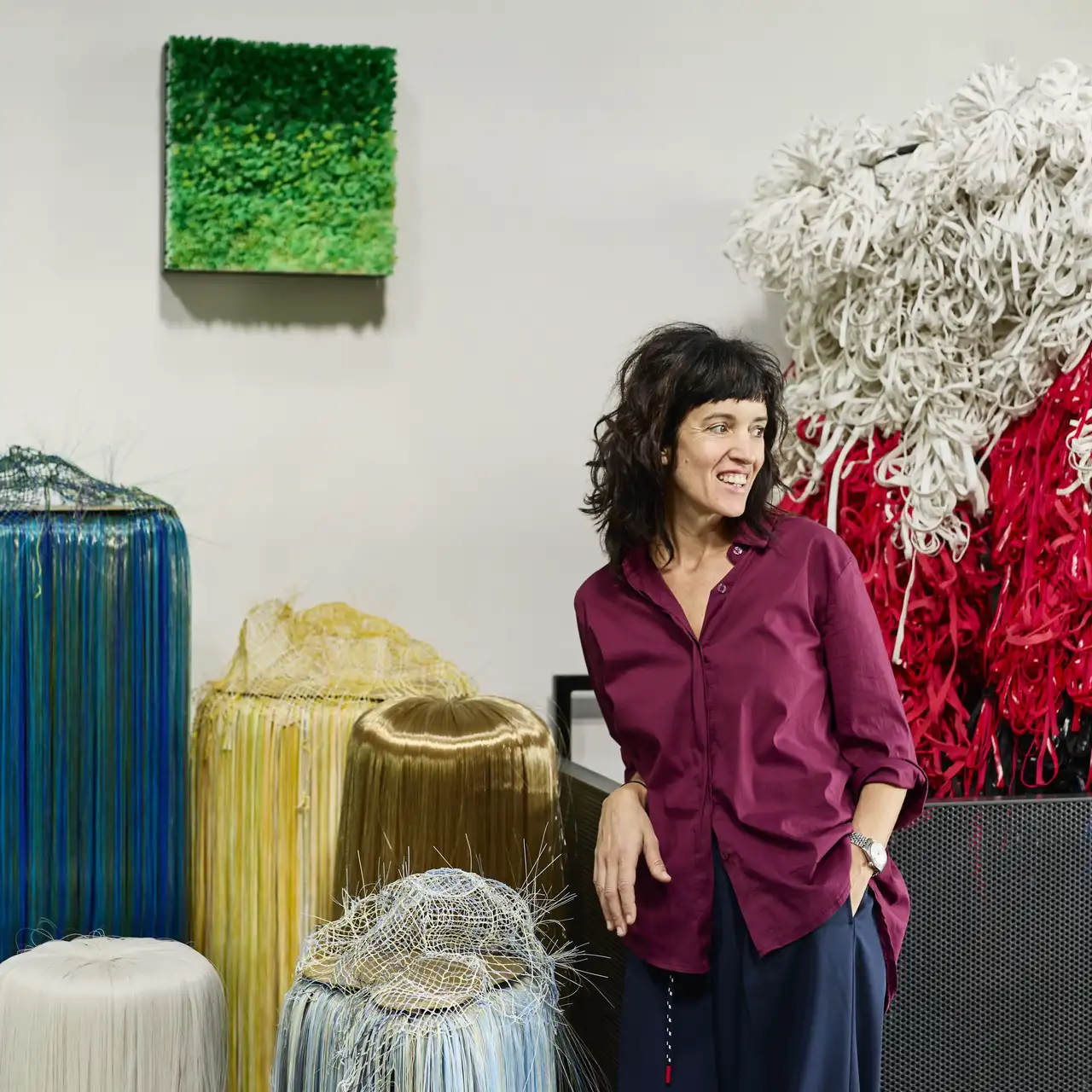 I materiali che Francesca Pasquali usa e trasforma per creare le sue opere comprendono oggetti e materiali industriali e plastici, di riuso e riciclo. Foto di Maja Karen Hansen.