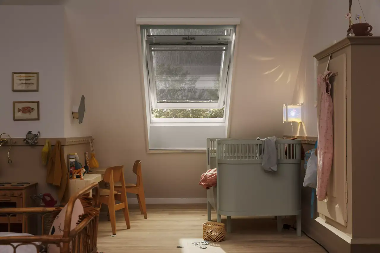 Le finestre per tetti offrono più accessori per ottenere un’oscurità ottimale, come le tende oscuranti a rullo, anche in versione elettrica o a energia solare. I bambini più grandi possono divertirsi a scegliere la loro tenda preferita tra diverse colorazioni per rendere la cameretta ancora più giocosa.