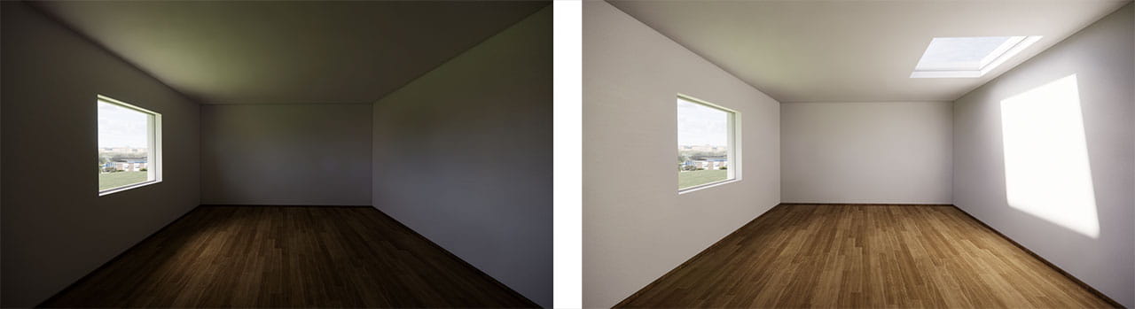 Nelle due immagini puoi osservare il cambiamento prodotto da una nuova finestra per tetti.