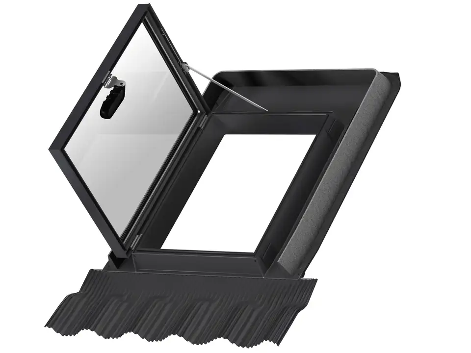Das seitlich angeschlagene Fenster kann je nach bevorzugter Nutzung nach links oder rechts zu öffnen sein. Aus wartungsfreiem Aluminium und Polyurethan hergestellt. Wird komplett mit integriertem Eindeckrahmen für flache und profilierte Dacheindeckungen bis 6cm geliefert.